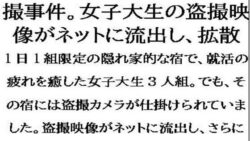 CMNFリアリズム 古民家風の宿泊施設で盗撮事件。女子大生が盗撮被害を特定されて、映像がネットに流出し・・・|d_556001|CMNFリアリズム
