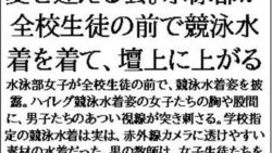 CMNFリアリズム 夏を迎える会。水泳部が全校生徒の前で競泳水着を着て、壇上に上がる|d_634991|CMNFリアリズム